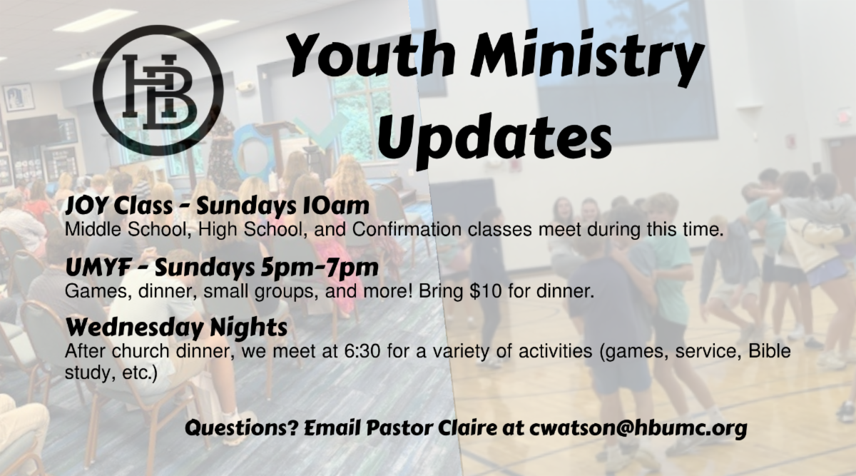 There’s a lot happening in our youth ministry this weekend! Regular activities (UMYF & JOY Class) will be paused to make room for some exciting opportunities:
