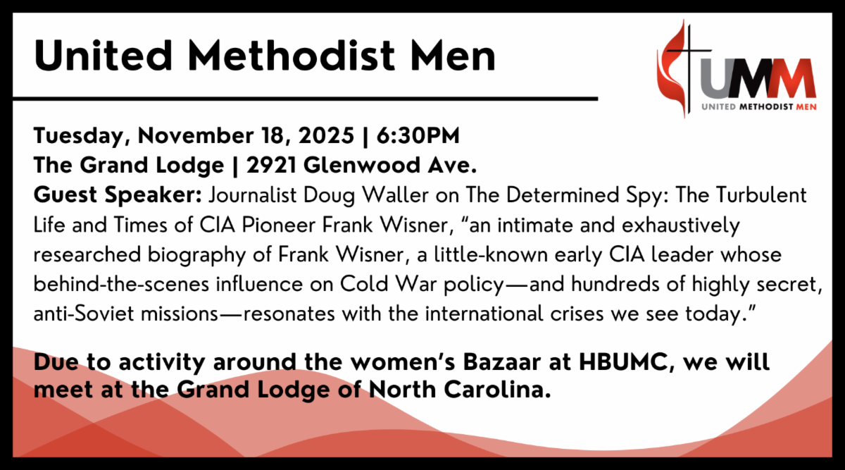 - Sunday, November 9: Our Confirmation Class will take part in a Worship Field Trip to visit Wilson Temple UMC, Christ Church Episcopal, or Church on Morgan.