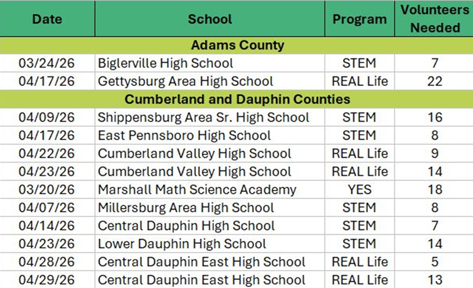 Join us for the chance to meet and network with ambitious high school students who are united in the purpose of enhancing their leadership and workforce development skills. Invest in the pipeline to the future by empowering young people's journey. Represent your company at our Youth Leadership Summit, you will: Participate in an interactive workshop focused on teaching you how to engage and mentor the youth in your communities, Network with Area Business and Community Leaders, Connect with over 200 Young Leaders from across Adams, Cumberland, Dauphin, Lancaster, Lebanon, Perry & York Counties, Discuss your Company's Initiatives, Successes, & Challenges, Mentor High School Students on Potential Career Paths!