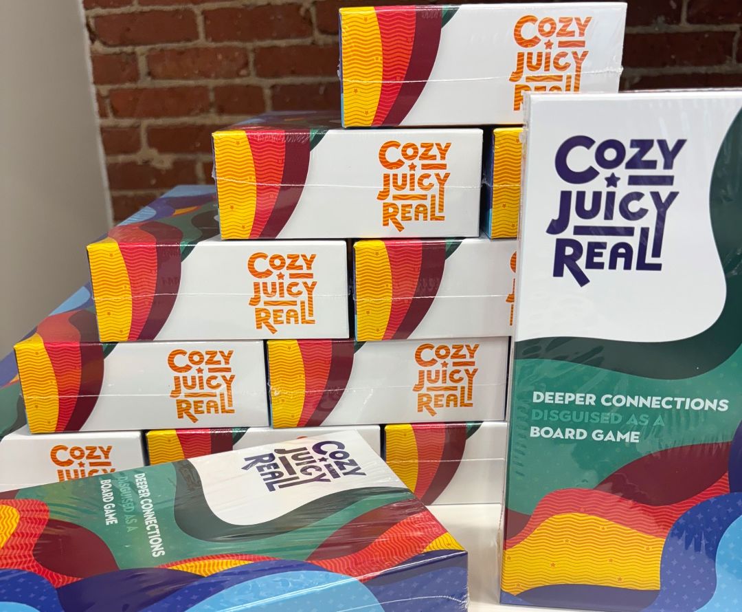 We hope you'll join us for an evening of experiencing human connection through the board game Cozy Juicy Real. People often wonder what we at Someone To Tell It To do. We promote and provide human connection through the practice of listening. (Click the Graphic for Details)