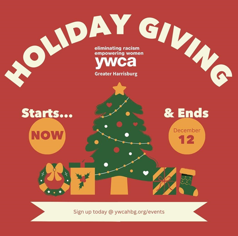 Each day gets a little cooler and brings us a little closer to the Holiday Season and the YWCA Greater Harrisburg's Holiday Giving Program. Each year, the YWCA Greater Harrisburg partners with local individuals and organizations to support the hundreds of families in need who are served by the YWCA during the holiday season for our Holiday Giving Program. Last December, cheer sponsors helped us brighten the season for more than 400 individuals and families. We are hoping to hold another successful and safe Holiday Giving program. This year, more than ever, we hope to spread joy to the individuals and families in need. If you or your organization would like to sponsor a YWCA client's wish list, please visit ywcahbg.org/events to complete a sponsorship form by October 31st! (Click the Graphic for Details)