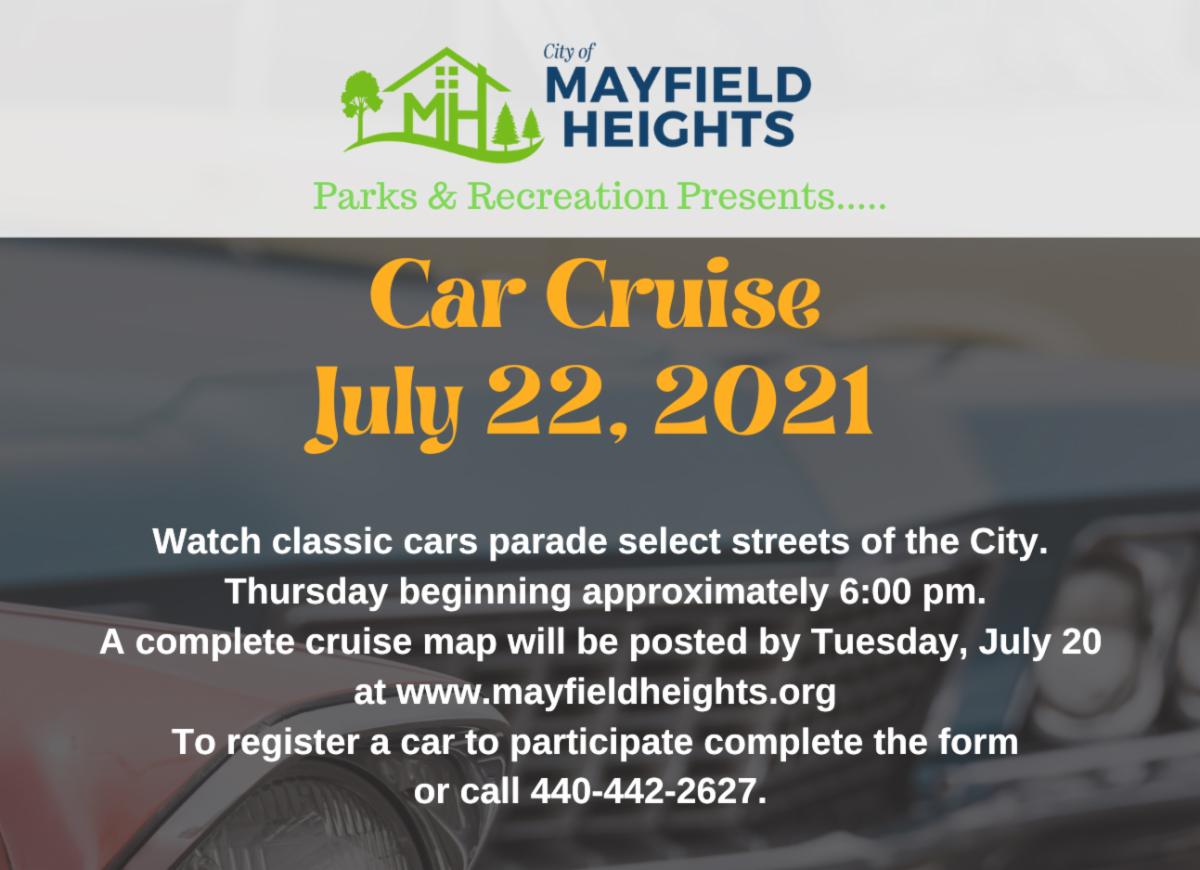 Summer is filled with activity and events. Mark your calendars for the Car Cruise on July 22, the Mayor’s Golf Outing on July 23, and First Responder’s Night on August 6. Be sure to join in on the fun!