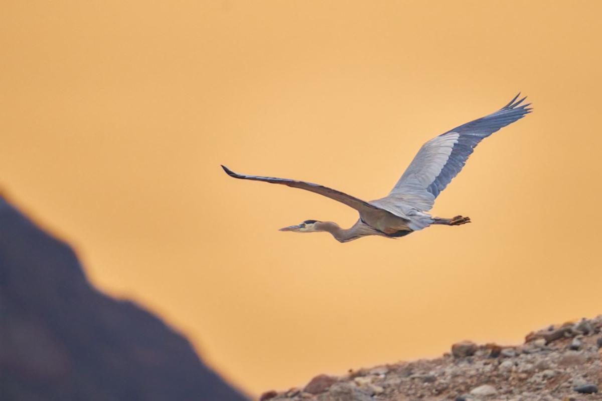 David Anderson, a professional photographer and birding tour guide, makes a daily ritual of getting outdoors to photograph wildlife. He captured the featured photograph of a Great Blue Heron as it swept across the Las Vegas Wash, the "urban river" that connects the Las Vegas Valley to its primary source of drinking water: Lake Mead. The wash is bordered and intersected by wetlands, which are flush with species such as cottonwoods, willow trees, common cattails, and common reed that help filter harmful contaminants from the 200 million gallons of reclaimed water, urban runoff, shallow —groundwater, and stormwater that travel the wash daily. The wetlands also provide a home for species such as the yellow-backed spiny lizard and black bullhead — and an incredible venue for communing with our desert landscape. Michael Cuddy took our featured photograph of the wetlands along the 14-mile Clark County Wetlands Loop Trail - a scenic path perfect for walking, running, or cycling (map).