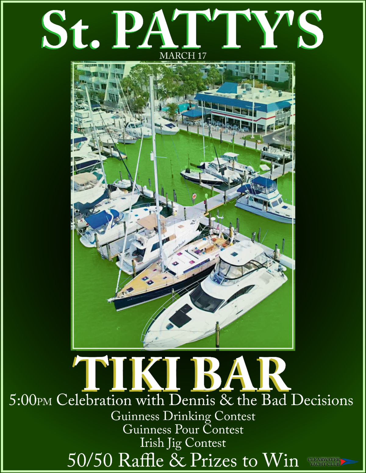 for an exhibition of the Pram’s ‘Wearing of the Green’ and sailing by the Tiki Dock during Happy Hour!