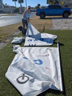 The Clearwater Prams (aka little sailboats) are donning new sails thanks to the Yachting Committee. Many thanks to Ned Covell, Willis Gray and Bow Chasers; Cathy McNally, Anita Cafferty and Anne Grace for retiring the old sails and rigging the new ones! A well-tuned work party! Next project to get the Prams ready for the April 27th Rainbow Regatta will be replacing lines and updating flotation devices.