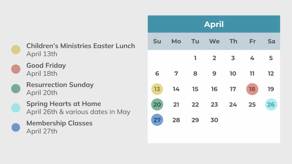 This Sunday for Easter ALL children (birth – 4th grade) will start in the service at 9 AM with their parents. After the worship singing, at approximately 9:30, all our care rooms will open.