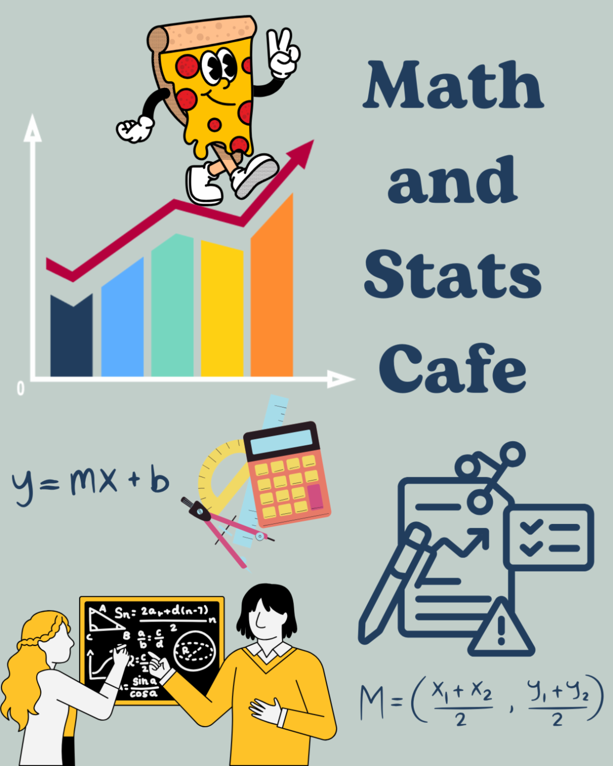 The Math and Stat Cafe - The Math and Stat Cafe is an ongoing event that happens every Monday, Wednesday, and Friday in Chapman S222 from 12 PM to 1:50 PM! You can get help from teachers and tutors with STAT 100, 250, MATH 100, 115, 130, 150, 170, 308, 309, and more—all while enjoying FREE pizza!