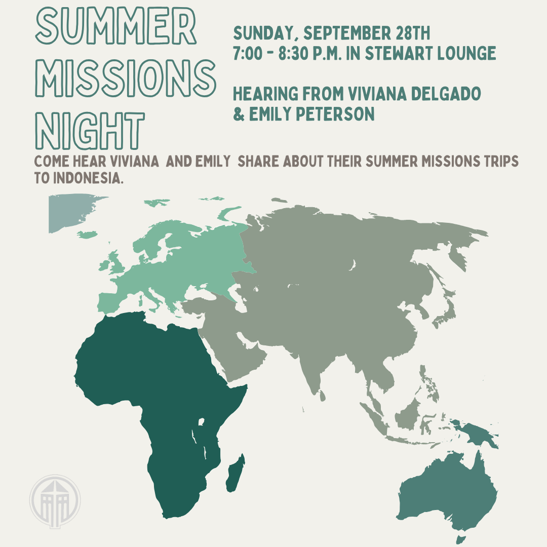 Come hear Viviana Delgado and Emily Peterson share about their summer missions trips to Indonesia.