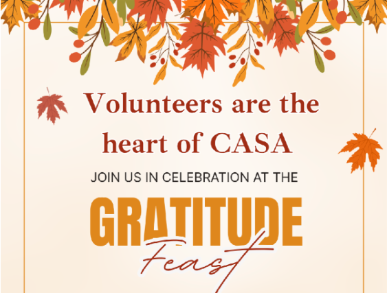 As the Thanksgiving season approaches, our team's hearts are filled with gratitude. This is a time for reflection, for counting our blessings, and for acknowledging the incredible community that makes our work possible. On behalf of everyone at CASA of Placer, Yuba & Sutter, we want to extend our deepest thanks to you—our dedicated volunteers, donors, and steadfast supporters.