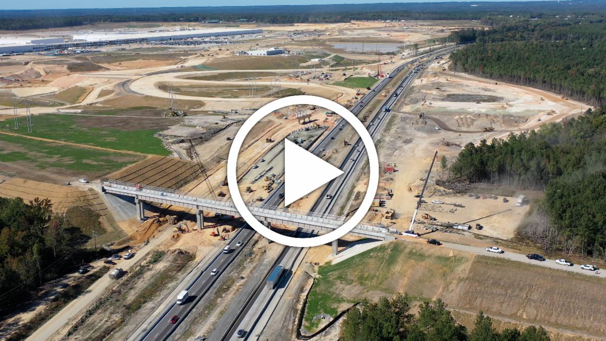 Construction is underway on a new interchange along I-77 in Blythewood to support the future SCOUT Motors Manufacturing Plant. SCDOT is managing the design-build portion of the interchange and construction of a new railroad bridge that will provide direct rail access to the facility. The 1.3-million-square-foot plant is expected to create thousands of jobs and drive significant economic growth in the area.