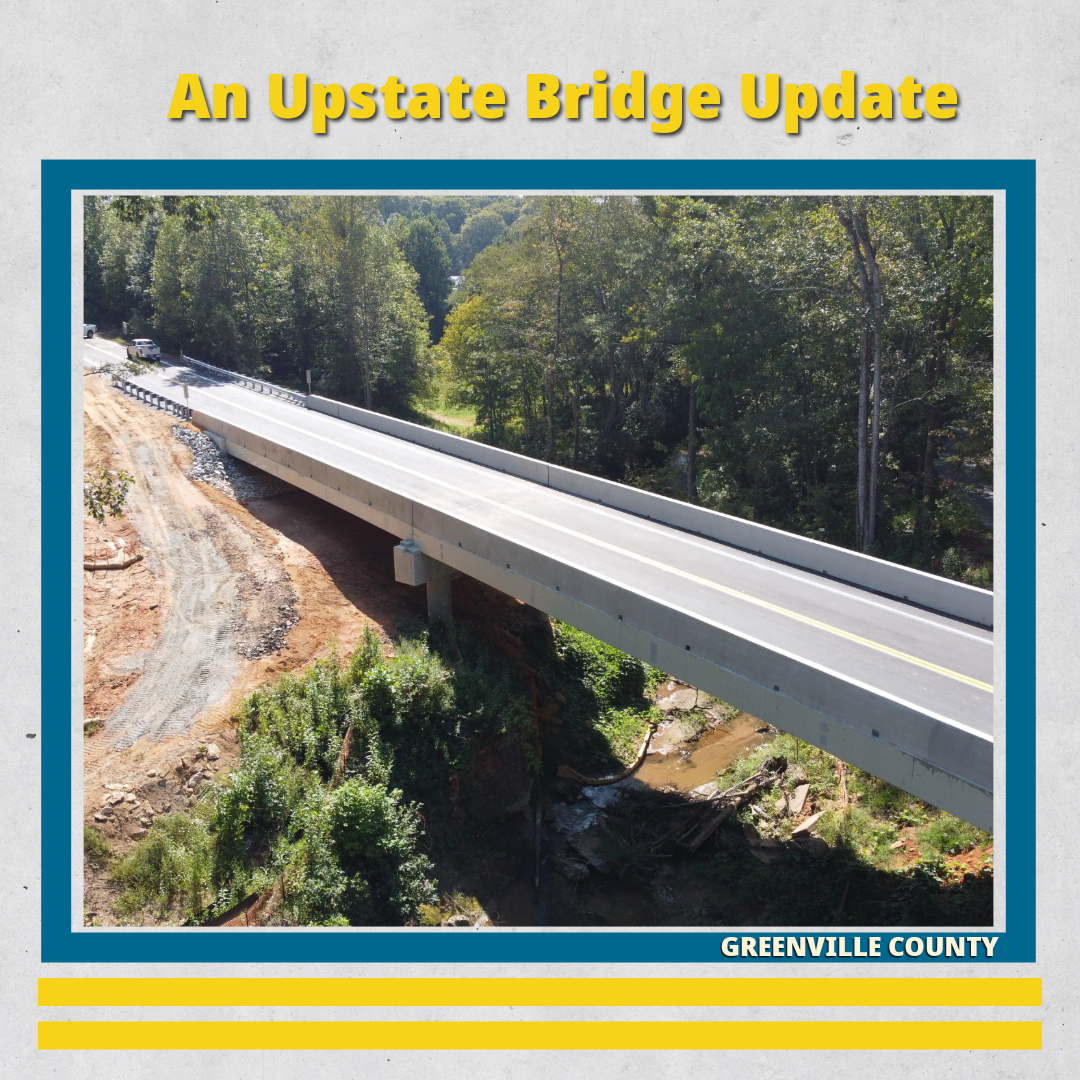 | | Upstate Bridge Update: Dill Road over Middle Tyger River | | In Greenville, SCDOT has just completed the new bridge on Dill Road over the Middle Tyger River, one of several bridges replaced in the aftermath of Hurricane Helene. Work officially commenced in February and took just under seven months to complete. Its completion is essential to the continued recovery of the state, keeping communities of all sizes connected. | | Giving SC the Green Light: A Closer Look at Traffic Signals with SCDOT