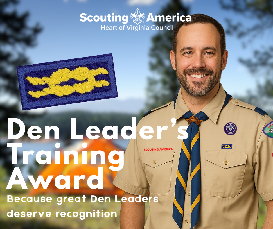 Whether you're guiding Lions, Tigers, Wolves, Bears, or Webelos, being a Den Leader takes heart, creativity, and commitment. The Den Leader’s Training Award recognizes your incredible impact and your dedication to delivering a fun, safe, and meaningful Cub Scout experience. To earn this square knot, Den Leaders must: