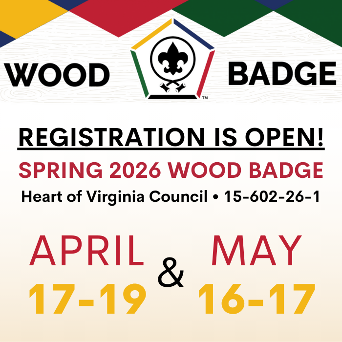Wood Badge is the premier leadership training for all registered adult Scout leaders, blending Scouting traditions with modern leadership skills. Over two weekends (April 17–19 and May 16–17, 2026) at Cub Adventure Camp, participants build teamwork, leadership, and organizational skills in a fun, hands-on environment. Along the way, they form lasting friendships and grow as impactful leaders. Registration is officially open!