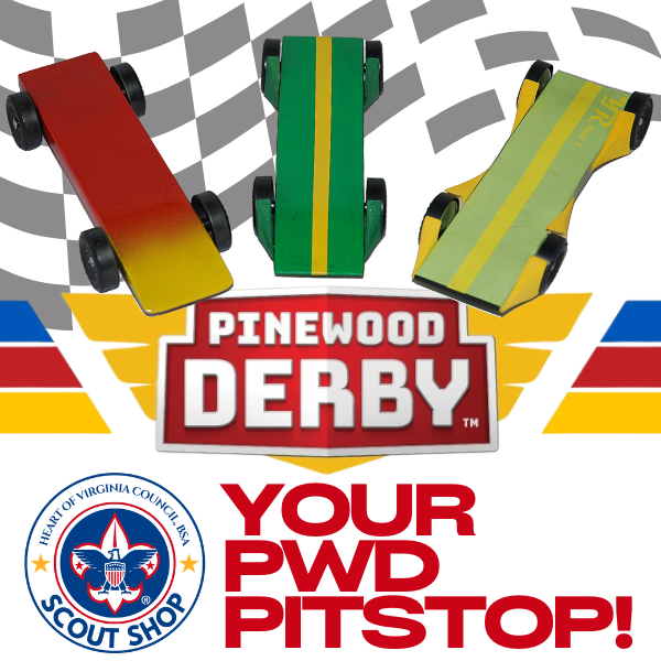 On your marks, get set, GO! Pinewood Derby season is just around the corner, and the Heart of Virginia Council Scout Shop is your Pit Stop for car kits, decals, accessories, awards, medals, and patches.