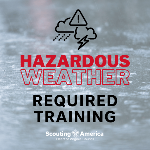 Hazardous Weather Training is required for all direct-contact leaders in Scouting America, and helps Scouting leaders recognize and respond to weather-related risks during Scouting activities. This online course provides essential knowledge to plan safe outdoor adventures, assess weather threats, and take the right action when conditions change. It’s an essential part of ensuring youth safety in the outdoors. This 30-minute training must be completed every two years. At a minimum, one adult leader must complete this before a unit can camp with youth.