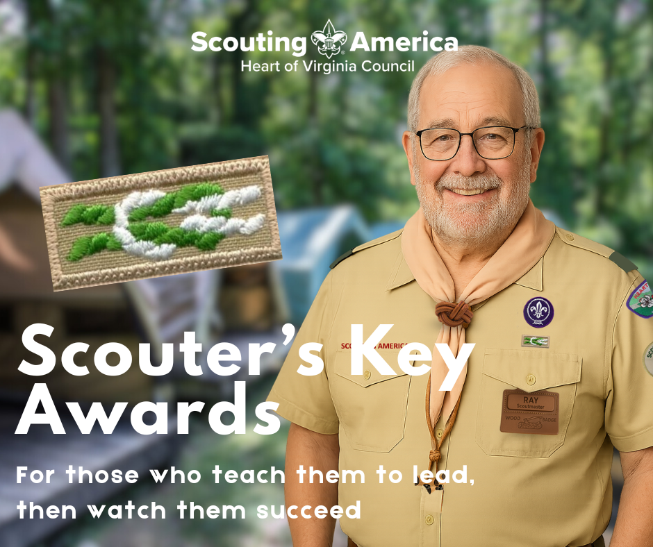 If you’re a Cubmaster, Scoutmaster, Skipper, or Advisor, the Scouter’s Key Award honors your leadership in delivering an outstanding program—and inspiring youth to reach their full potential. This isn’t a participation patch. It’s a symbol of excellence. To earn this square knot, you must: