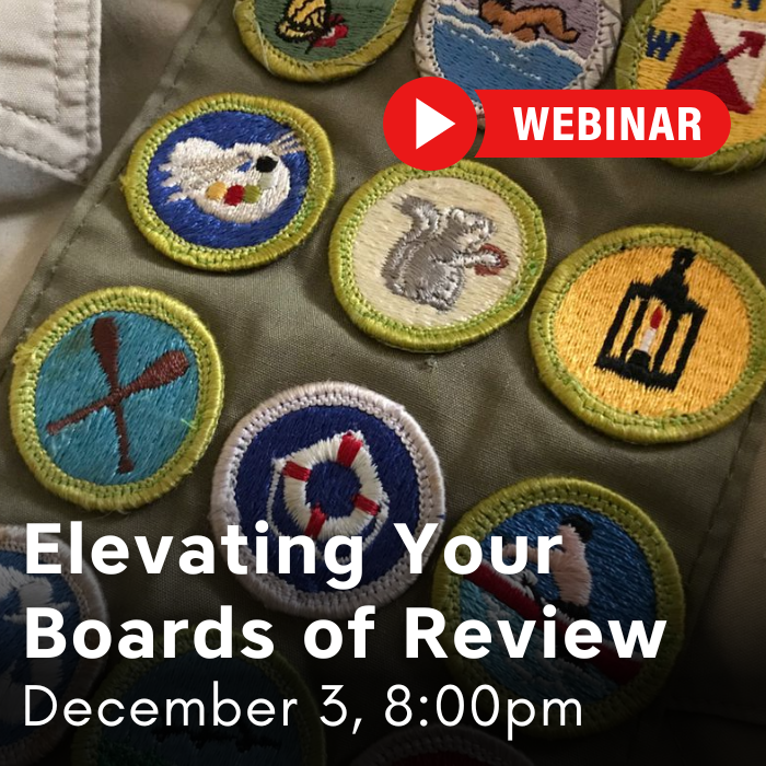Join Scouting America on December 3 at 8:00pm ET for a webinar on the Boards of Review process. Discover how these meetings should be powerful tools to achieve the Aims of Scouting and learn best practices to make them educational, meaningful, and even enjoyable for everyone. A recording of the webinar will be posted on our Facebook page following the event.