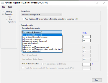 Recently, CDPR released PREM (version 6.0) which includes some new features such as a rate calculator, additional chemical input data (e.g., SMILES), Down-the-drain products, and vegetative filter strip (VFS) mitigation. Figure 1 shows the options for running Down-the-drain (DtD) products. Along with the chemistry and application information, the user can input a Wastewater Treatment Plant removal and PREM will calculate the risk quotient for the DtD products. For agriculture products, if the user chooses to run a VFS, the user can input a flow length (Figure 2) and the model will run VFSMOD. Figure 3 shows an example of results from running a 25-ft VFS.