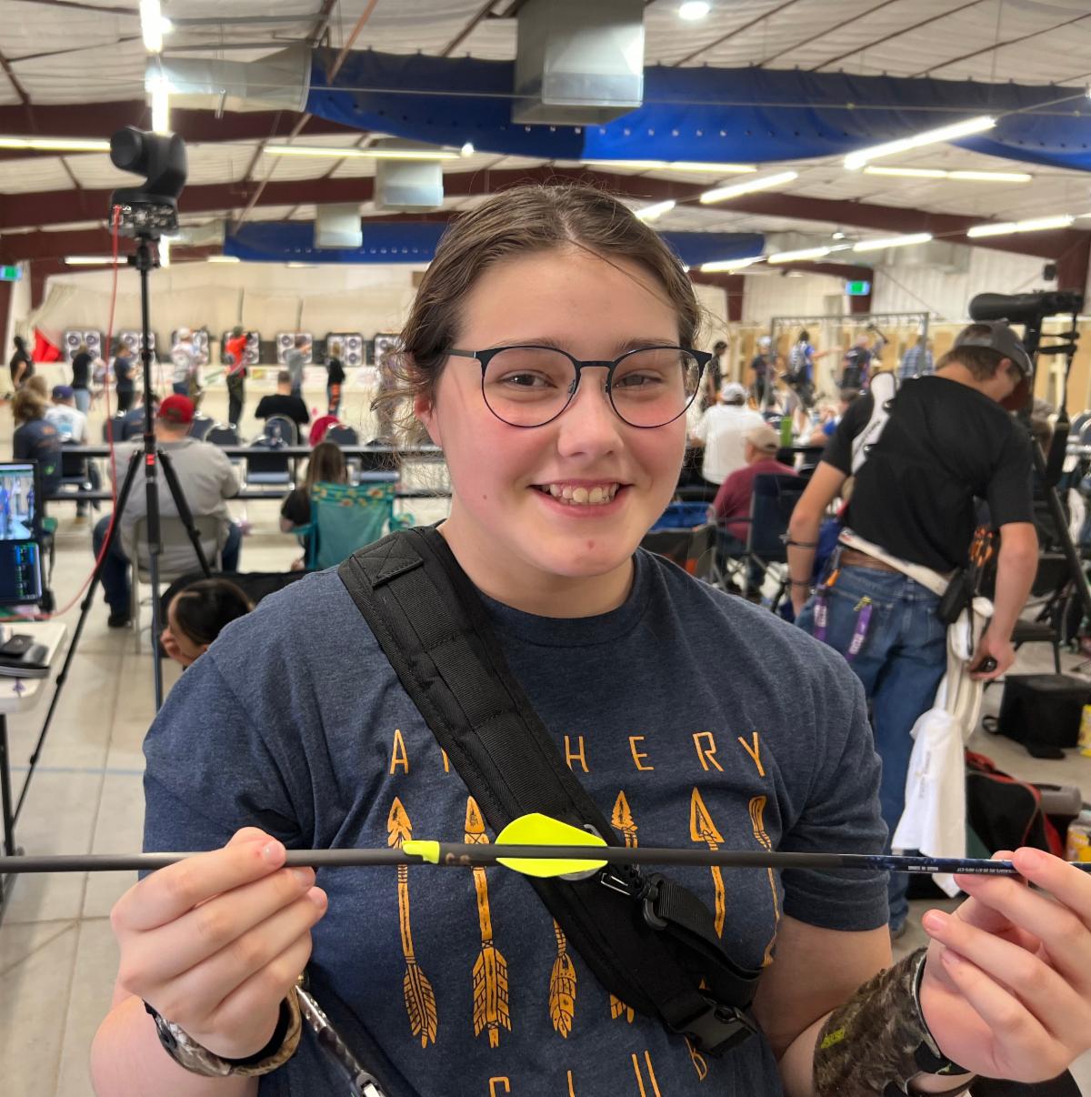 Crusader Archery hits the mark. In just its second year, the Crusader Archery team is showing that it has what it takes to stay on target. The varsity Crusader Archers competed in two tournaments during the month of December: the Corner Cup and the Candy Cane Crunch. Having competed in just the Candy Cane Crunch in their first season, the team performed admirably well against top archers from around the state and all improved on their prior years' performances. Jaymi Dingledine finished third in her Compound Bowhunter division--an incredible showing form a first-year archer. Grace Rivas also blew the spectators away when she hit a "Robin Hood"--her arrow struck and shattered the shaft of her previous shot! (Pictured left.)