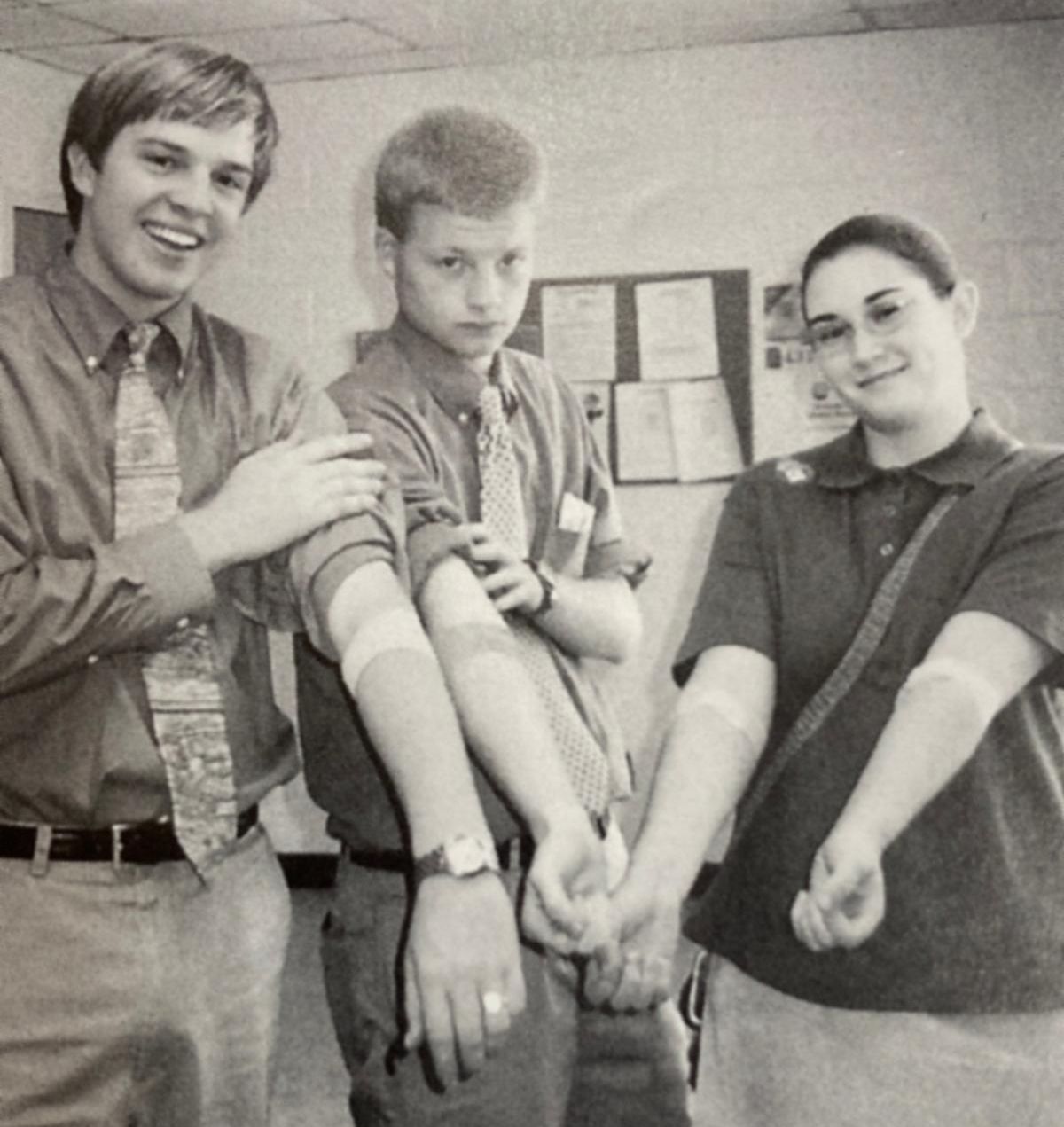 Evan Sparks ('02), Daniel Johnson ('02), Callie Milam ('02) and their classmates donated blood after the September 11 terrorist attacks
