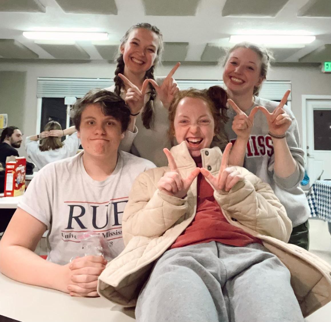 Over spring break, these four alumni had the opportunity to go to Washington state and serve the Yakama Indian Reservation with Sacred Road Ministries as the RUF groups from Ole Miss, Mississippi State and the University of Kentucky joined together to serve this community. In the mornings the students fixed roofs, picked up trash, painted, chopped wood, sorted clothing donations and more. The afternoons were spent playing with the kids in the community at Kids Club and sharing the love of Christ. Here are Ginny Fisher ’21 (Mississippi State), Emma Gregory ’21 (Ole Miss), Nathan Jones ’21 (Ole Miss), and Hannah Newsome ’18 (Ole Miss) enjoying their reunion and flashing a WA handsign!