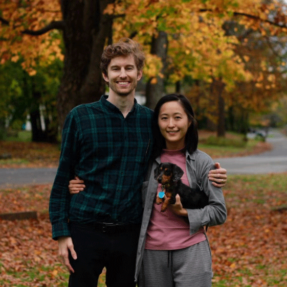 Catherine and Kyle swapped weekend visits between New York and New Haven from 2018 to 2020, and then married during the pandemic in September of 2020. After getting married, they made their home in New Haven, where Catherine works as a mechanical engineer. Though Kyle is based out of his company’s New York City office, he is working remotely full-time from New Haven. Catherine and Kyle love the east coast and New England, and enjoy weekend getaways to NYC. They love learning about British history (a recent obsession thanks to “The Crown”), discovering new music, visiting museums, watching The Simpsons (Thank you, Andy Black) and reading Dietrich Bonhoeffer. When Kyle is not working or spending time with his wife and his dog, Pippin, he is likely searching for new music to include in his next DJ set. Kyle’s fondest memories of WA are winning the Junior Varsity basketball tournament in 9th grade and class with A. Smith.