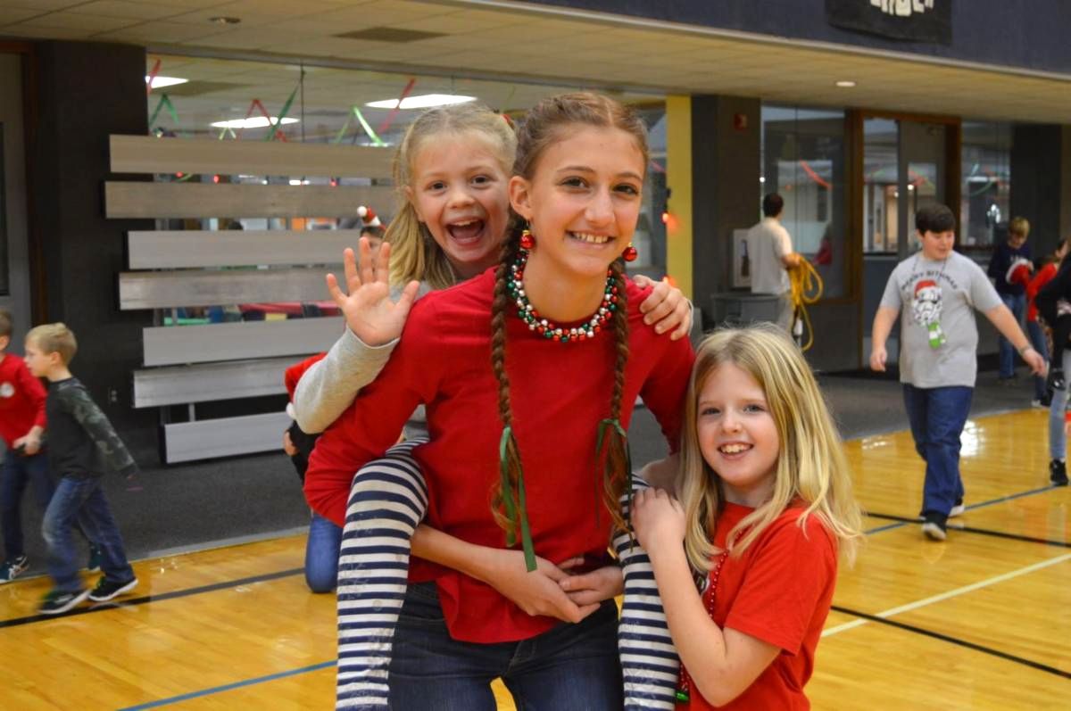 Current 2nd graders Juliet Callis and Ellie Clowers enjoying time with their Secret Santa buddy Joelle Marino (8th Grade)