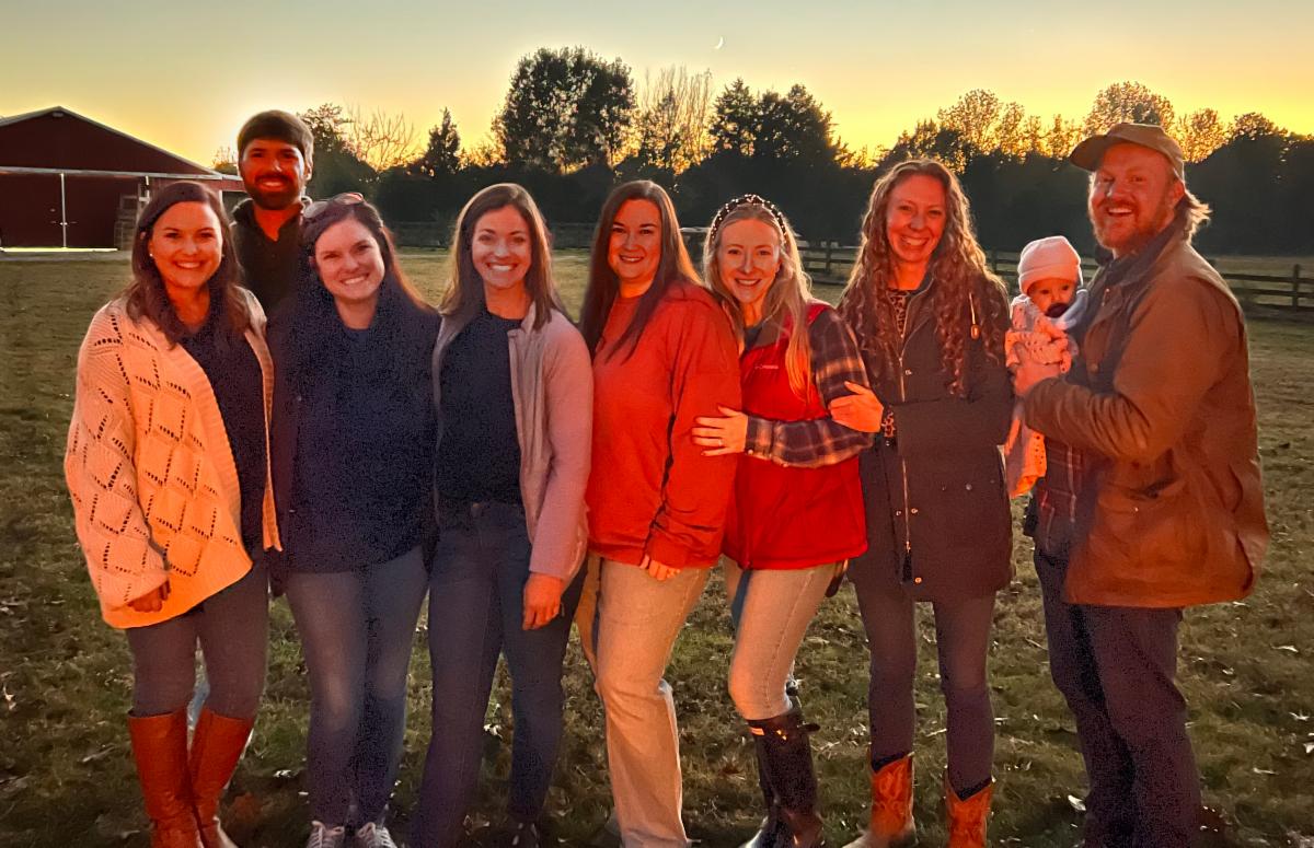 (L-R) Keith Hall Immanuel ('08), Jacob Laurence ('10), Jean Larroux, Cannon Allen Jr. ('11), Shelby Hall ('11), Amy Hall ('13), Megan Reneau Allen ('10), Amanda Hall ('08), Mary Rachel Hall Pang '(06), Katherine Hall Daniels ('04)