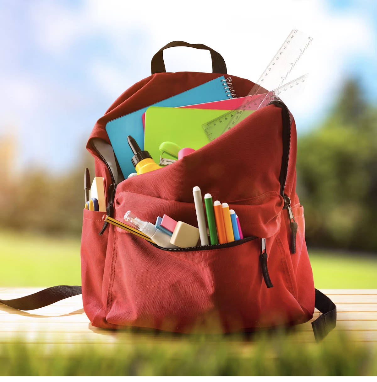 New School Supplies: Notebooks, binders, folders, loose-leaf paper, rulers