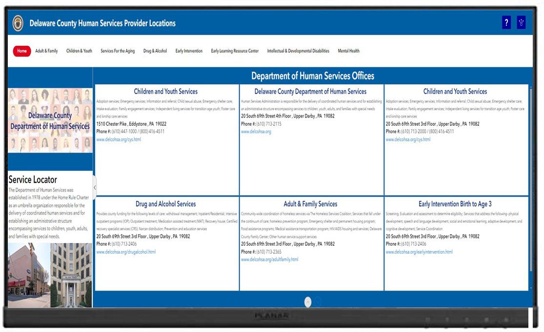 Human Services Provider Locations: An interactive viewer providing locations of Human Services providers within Delaware County for residents in need of assistance.