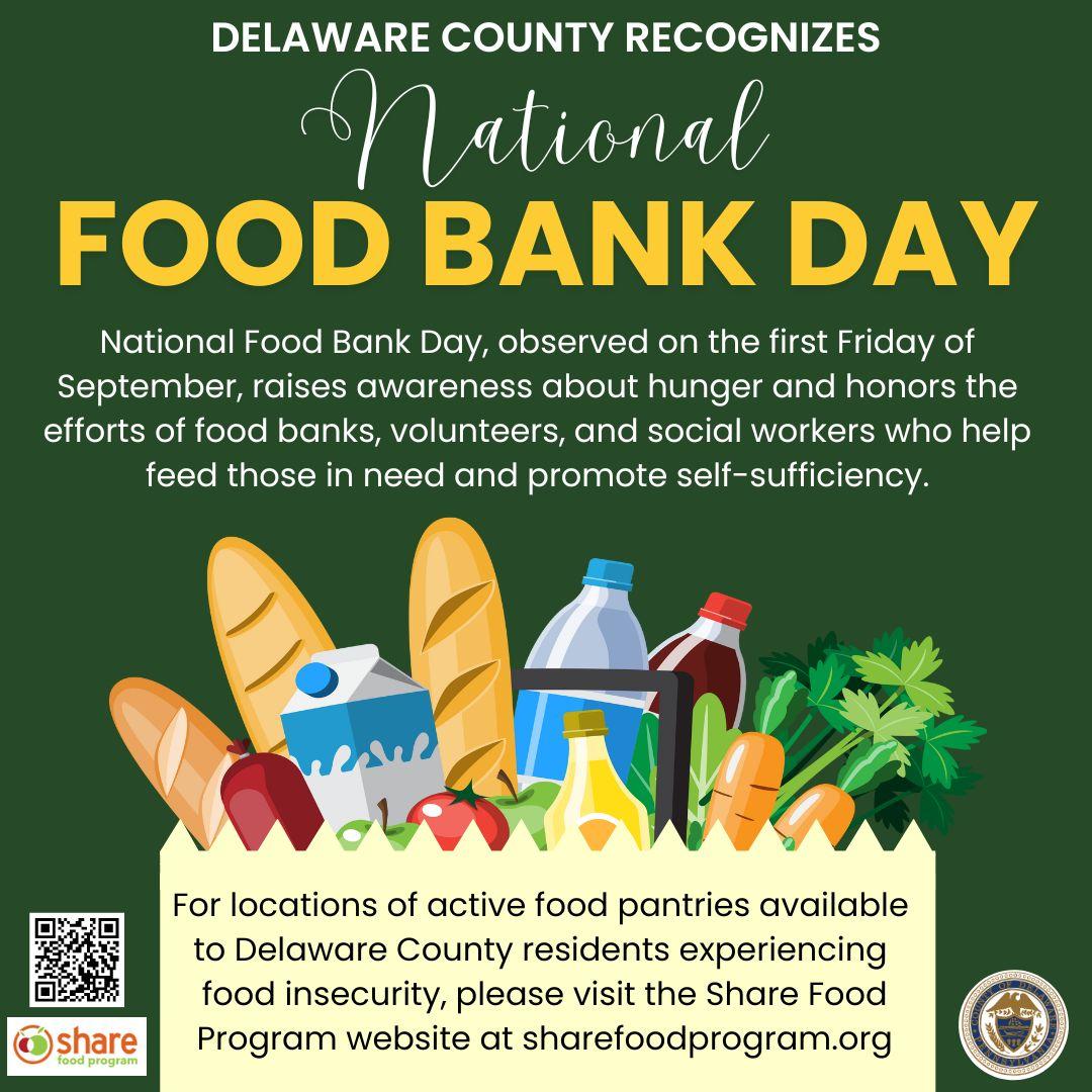 Delaware County is recognizing September 6 as National Food Bank Day, a day dedicated to raising awareness about the crucial role food banks play in fighting hunger.