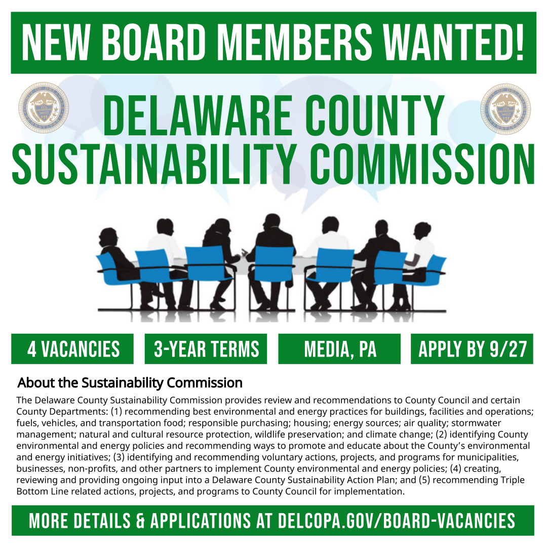 Delaware County is currently looking to fill four vacancies on the Delaware County Sustainability Commission.
