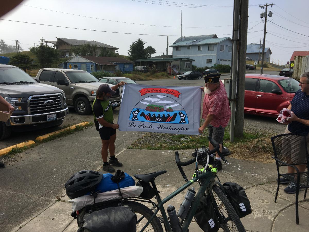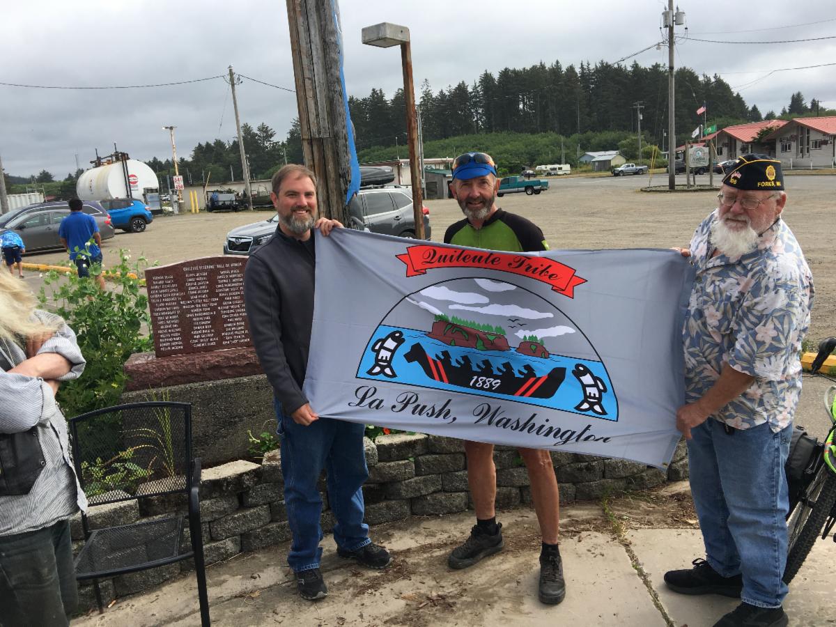 Closer to home there were some great folks over at La Push including Zachary Jones, Vice Chairman, and Rio Jaime, Treasurer from the Quileute Tribal Council. We also had a Tribal Elder, Thomas Jackson, who is one of the greatest storytellers I know besides being a Vietnam Veteran. Rio, Zach, and Thomas came to greet all of the riders with a welcome, a special gift, and a welcome song. We even enjoyed the drum songs from a few others during the first meeting. It’s great having neighbors and friends like the people of La Push.