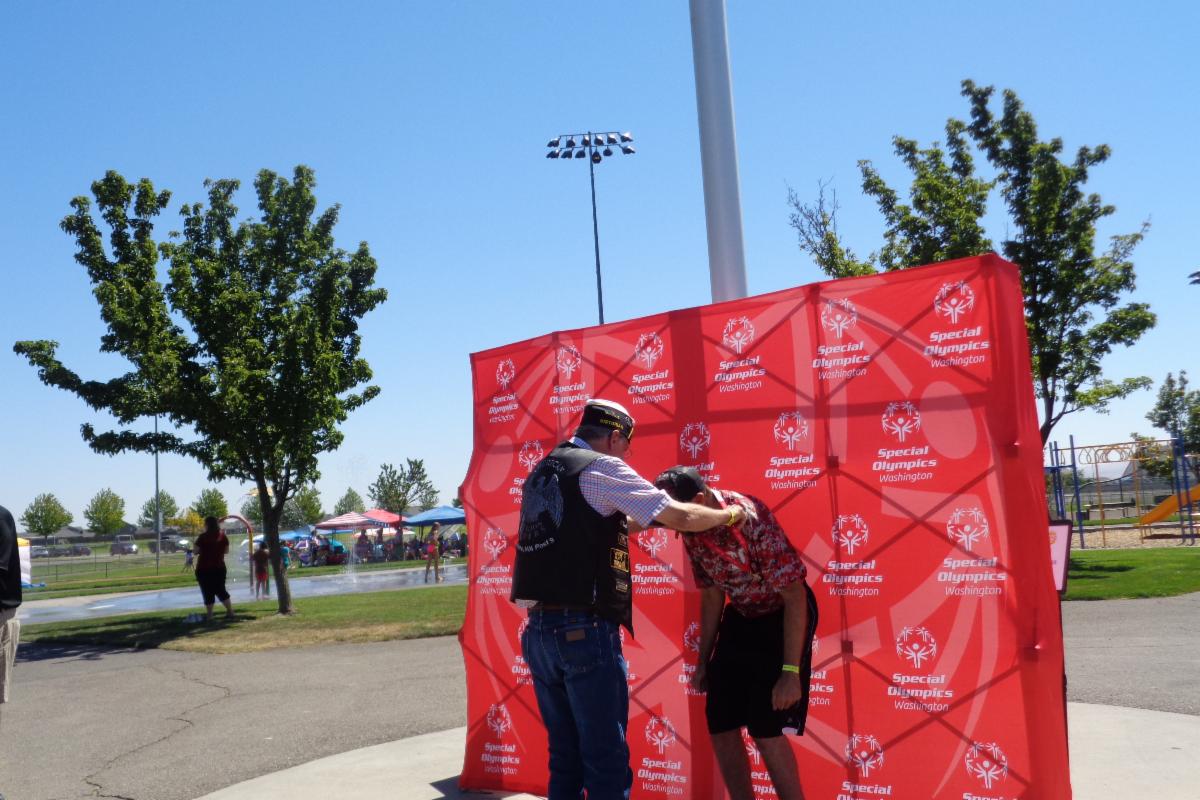The Special Olympics director for Eastern Washington asked me to drape the medals over all the winners. Grant continued to thank the American Legion throughout the day. We got the very best exposure and they are having us back for a 3 day, statewide, 1,500 athletic event in November.