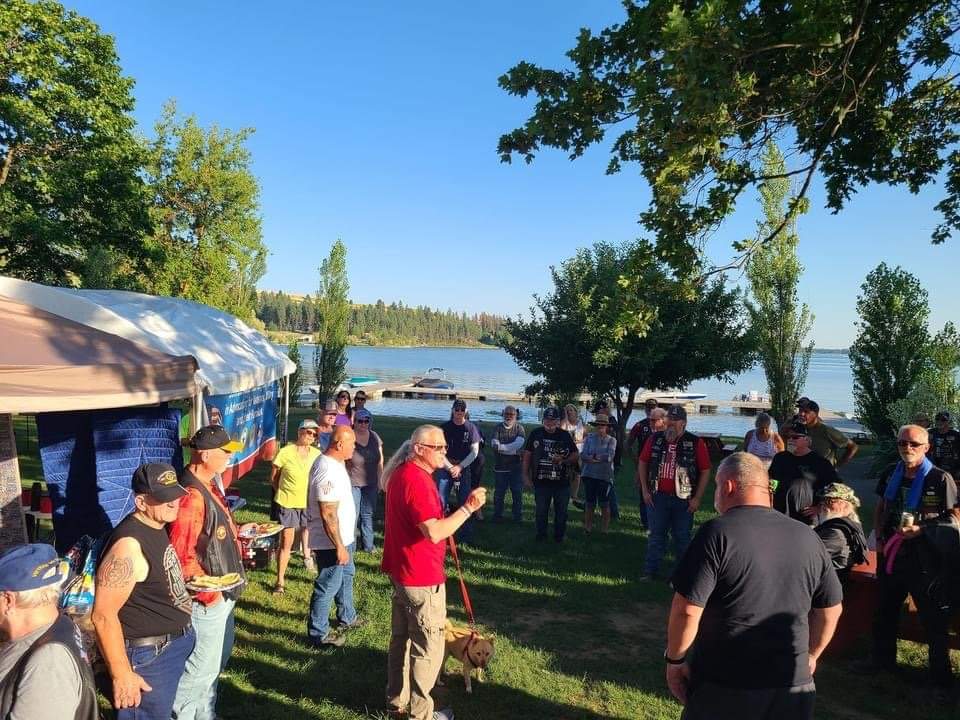 On Thursday July 28th, 2022, 4 Bikes, 2 Cages, 1 w/ Cargo trailer and 1 with 44’ 5th wheel toy hauler staged at the Castle Rock Shell to depart for Medical Lake, WA for the Annual American Legion Riders Rally & Meeting. At 0900 we set a course to navigate our way north to exit 68 where we added another cage to our Caravan. We traveled East over the rivers & through the woods to Post 9’s Rally we went. Oh, how the winds did blow, and the blistering heat kept our sweat glands active. Our diesel cage pulling the big toy hauler had some issues in the heat as the trailer purged 3 of its 6 tires along the way, the first of which flogged the wiring harness and caused several of them to separate. This added several hours to our trip to make repairs and locate tires. We arrived at the Campground in Medical Lake, WA at roughly 6 pm after several fuel & hydration stops. We were greeted by Ron Schoonover from Post 9 Spokane who got us into our cabin and showed us some great Post 9 hospitality. It was a warm welcome and we immediately felt comfortable.