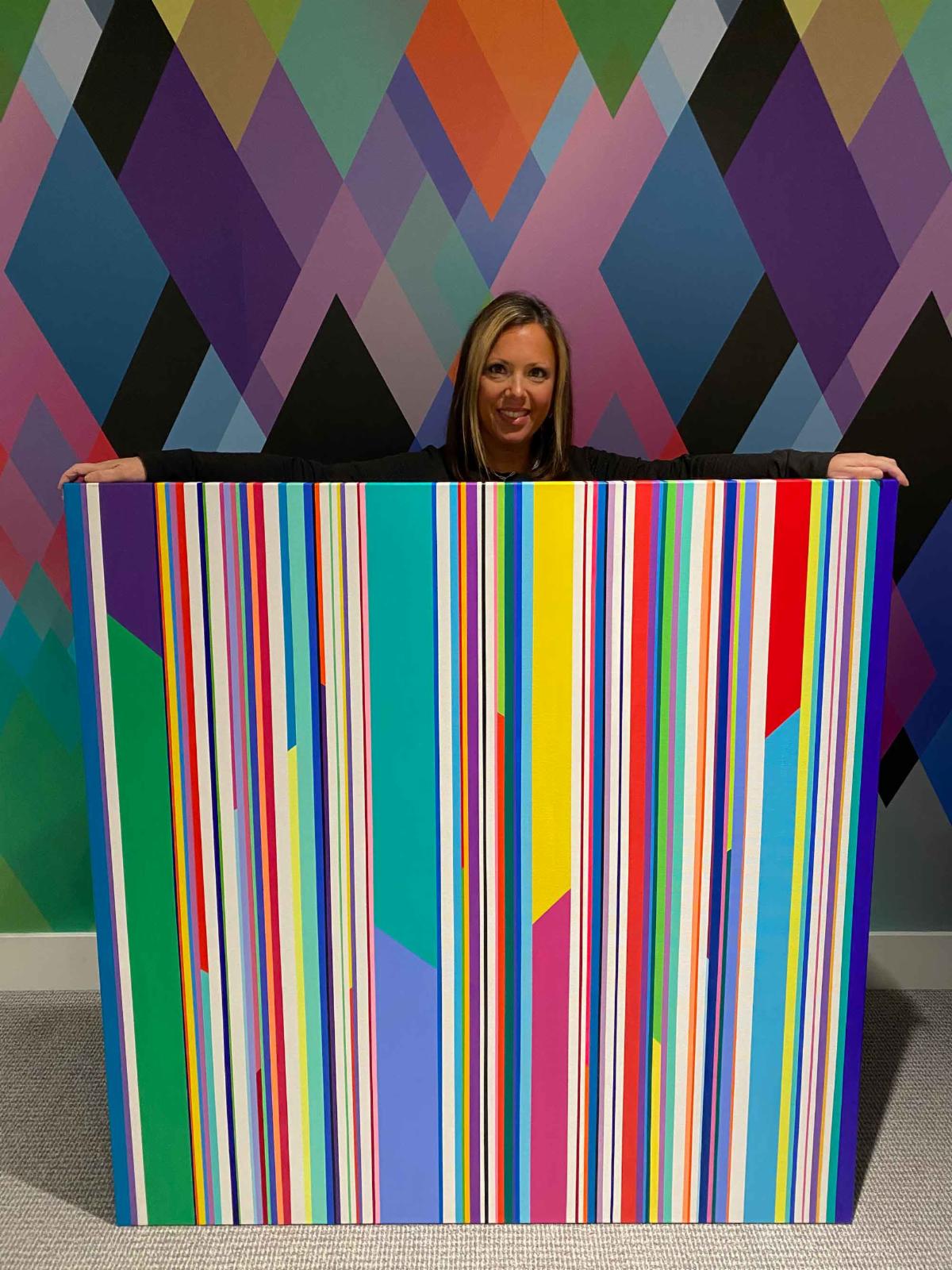 I'm Jennifer, an abstract/geometric painter. I live in Birmingham, Michigan(a suburb of Detroit) with my husband and two daughters. Most days you can find me painting in my studio or planning my next artwork. When I'm not there, I'm either on the tennis court, traveling or doing the day to day parts of running a household!