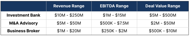 For this reason, we wanted to surface some helpful data highlighting differences between investment banks, M&A advisors, and business brokers based on a recent survey by Axial.