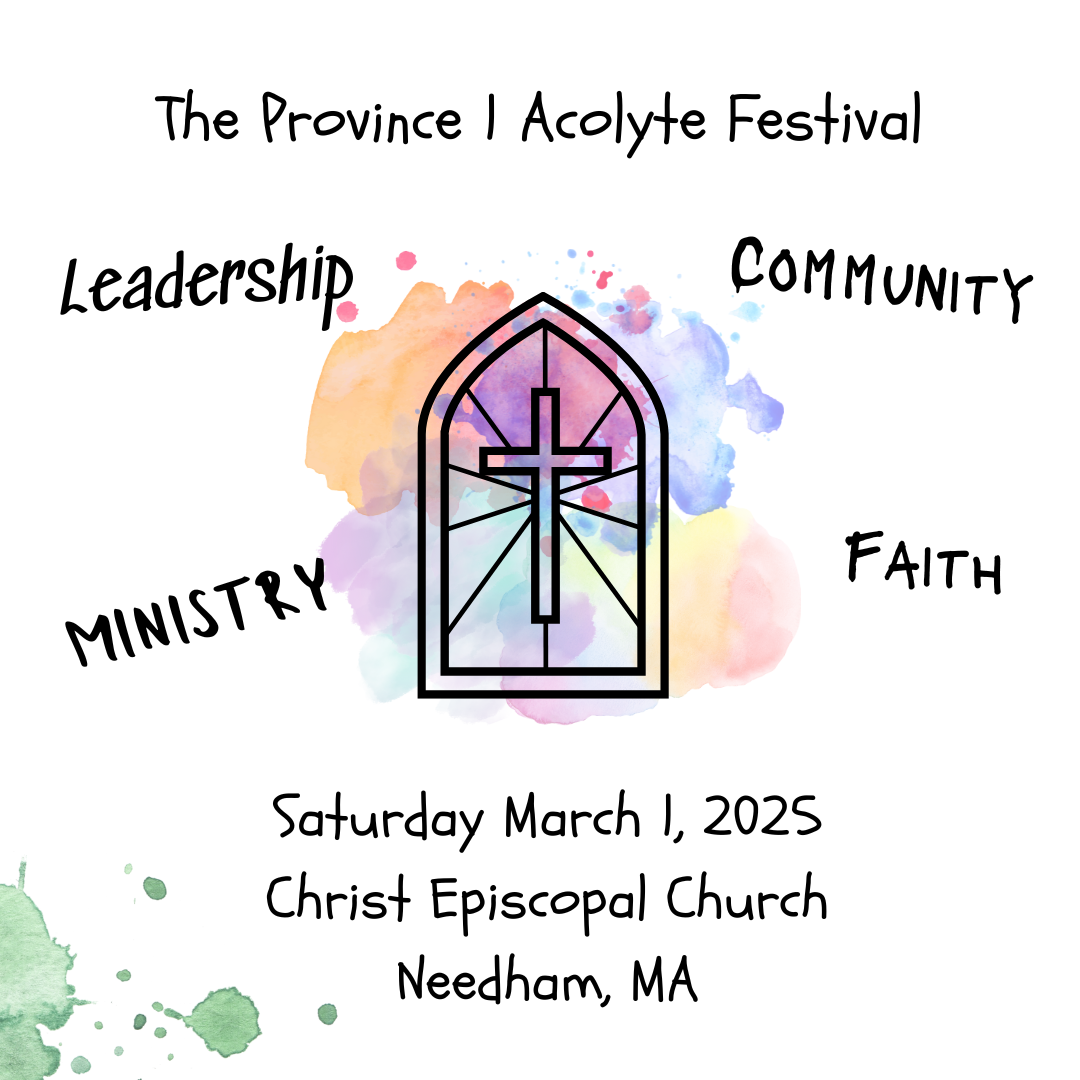 Join other Province I acolytes on Saturday, Mar. 1 for a day of fun and learning to celebrate the unique ministry that is acolyting in The Episcopal Church! Participants can expect to arrive at Christ Episcopal Church in Needham, MA at 10 a.m. for an acolyte olympics to get to know other youth from around Province I. A pizza lunch will be shared followed by acolyte practice, with dismissal at 2 p.m. Participants will leave with their own editable customary to share with their home church. Cost is $10 per participant, which will cover lunch. To register to bring a group or to ask questions, please email Emily Keniston.