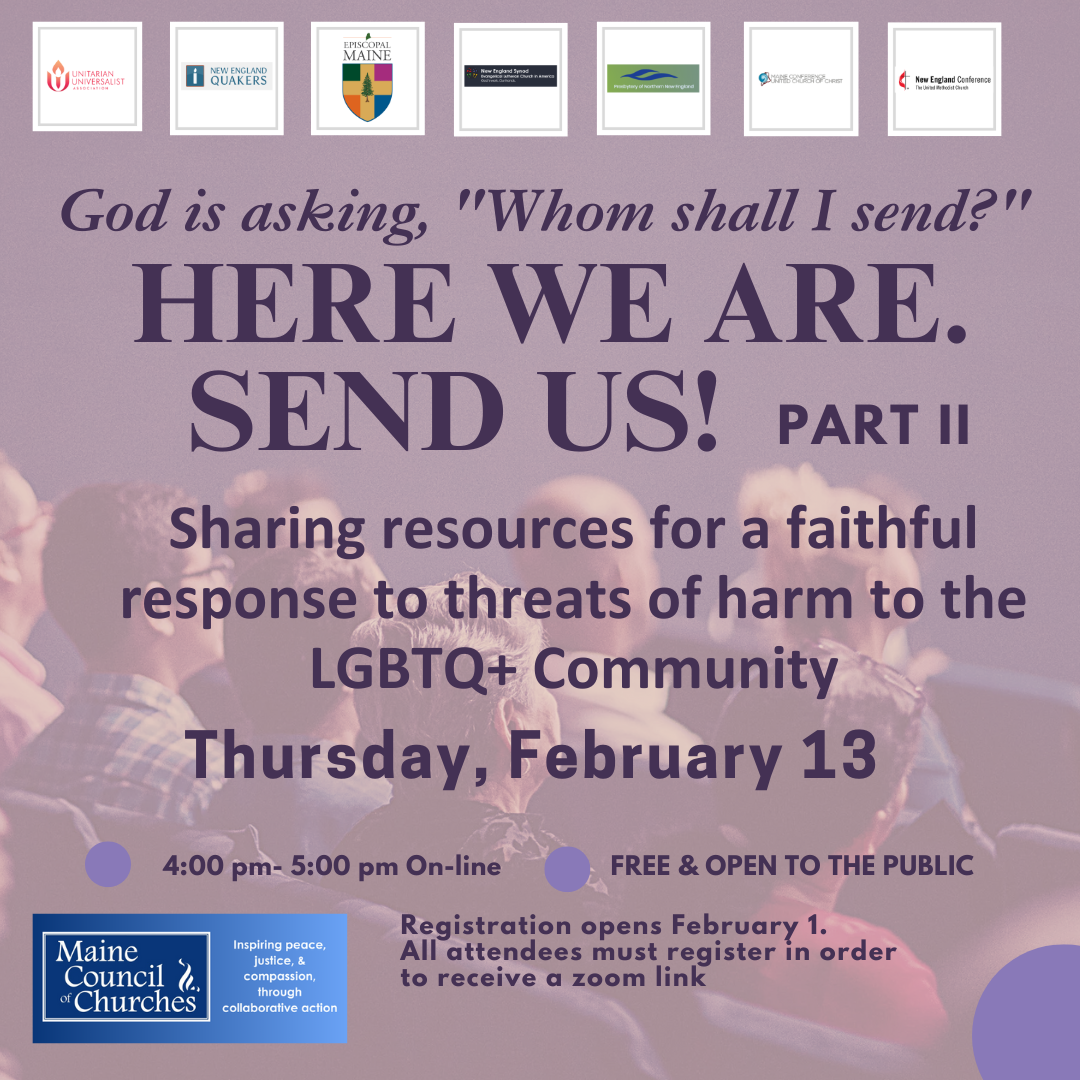 TONIGHT! Here We Are, Send Us!: Sharing Resources for a Faithful Response to Threats of Harm to the LGBTQ+ Community