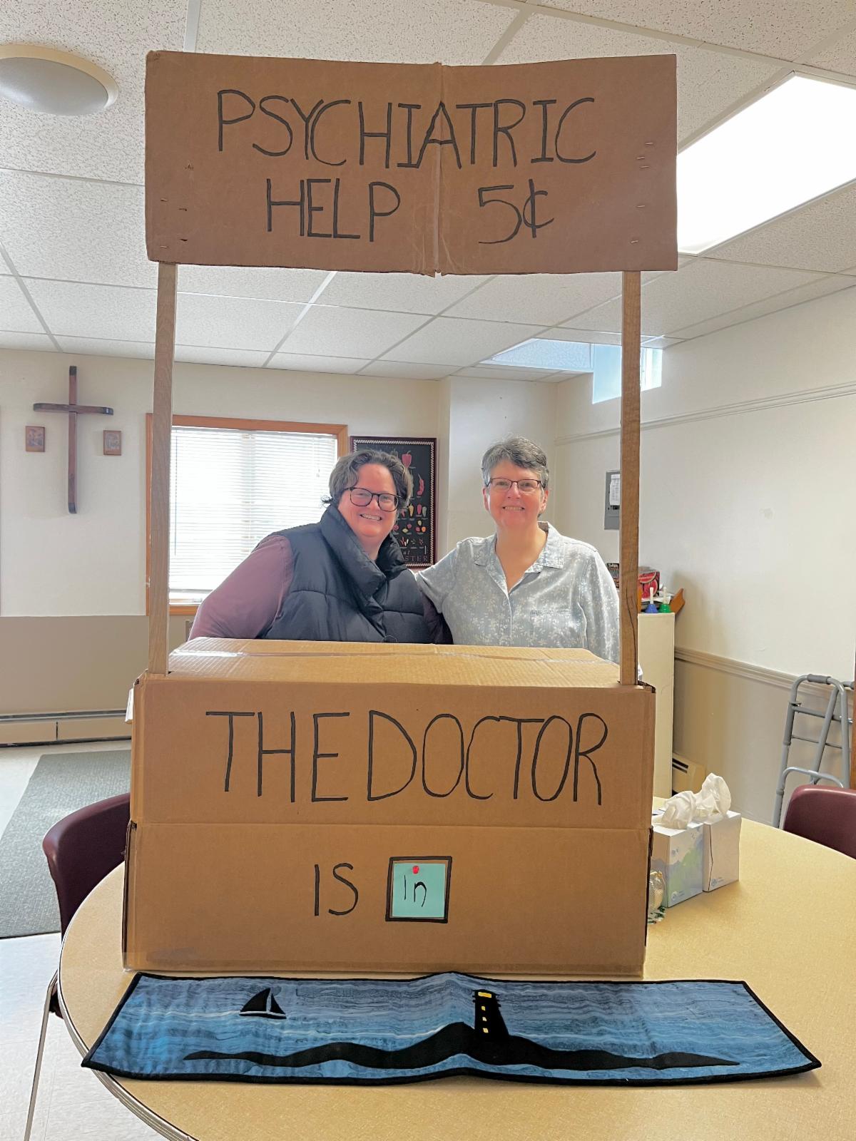 Advent and Christmas are cheerful seasons for many, but for some, this time of year is dark and depressing. Borrowing an idea from Charles Schultz's "Lucy," St. Patrick's parishioners (and vestry officers) Ame Barrier, LCSW (left) and the Rev.