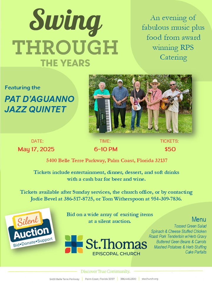 Join St. Thomas Episcopal Church, Palm Coast, for a Swing Through the Years event with music, food, and a silent auction.