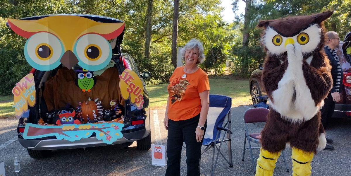 They had a huge turnout - their most successful Trunk or Treat ever! Then, on Thursday, they unwound with monthly Fellowship Luncheon, but still dressed up! Happy Halloween!