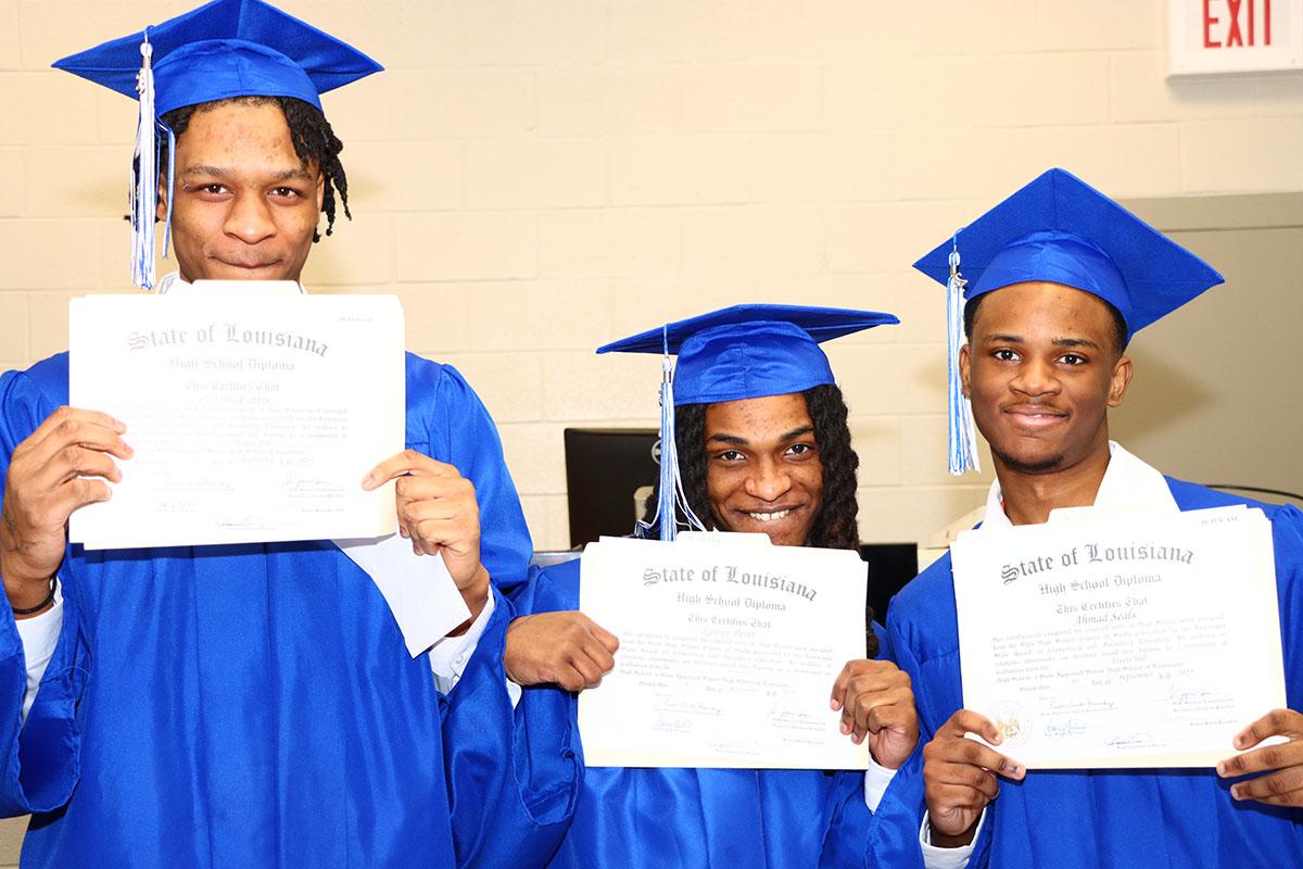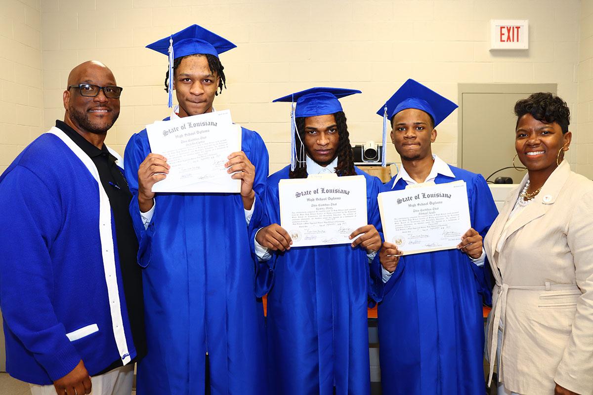 NOLA Public Schools (NOLA-PS) is delighted to celebrate the graduation of Ahmad Seals, Di’John Curtis, and Kenny Perry from Travis Hill Schools, a beacon of hope for court-involved youth. Their diplomas reflect not only academic achievement but also the transformative power of education, resilience, and community support. The Deputy Superintendent, Dr. Jawan Brown-Alexander, joined families, friends, educators, and community leaders to honor these remarkable young men, whose journeys embody perseverance and redemption.