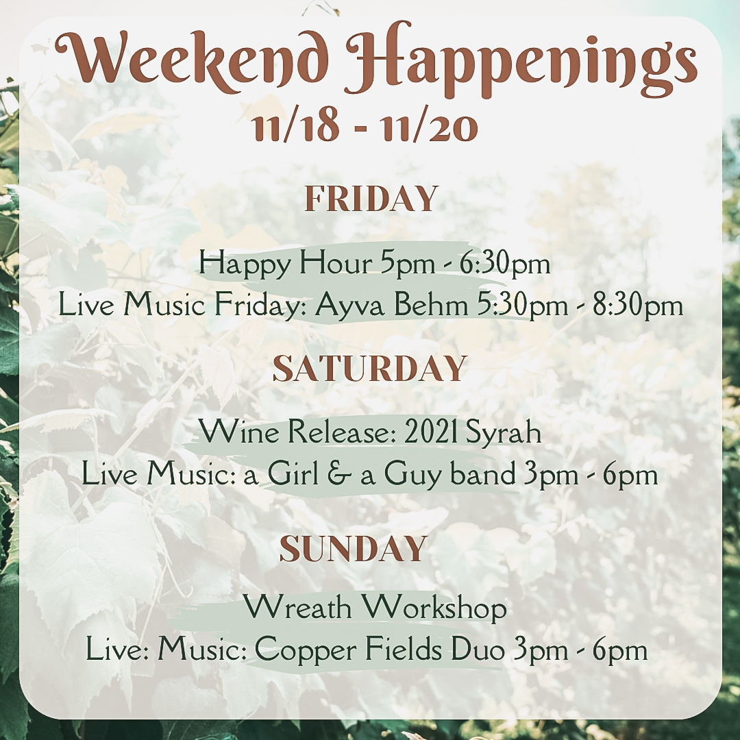 Wine Release: 2021 Syrah with live music from a Girl & a Guy band from 3-6 p.m.