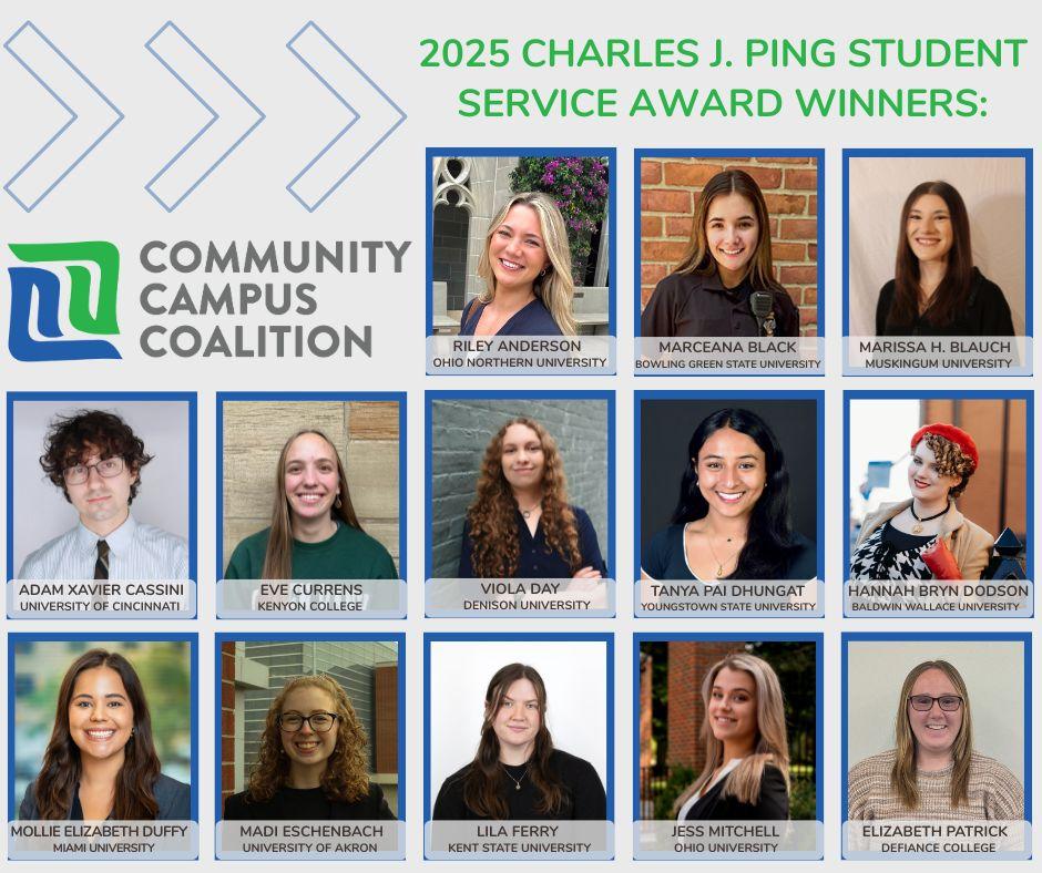 “The 2025 Hoch and Ping Award winners exemplify the power of service-learning and civic engagement in higher education,” said Stephanie Dodd, Executive Director of Community Campus Coalition. “These individuals are making a lasting impact on their campuses and communities, and we are proud to recognize their dedication to advancing community engagement across Ohio."