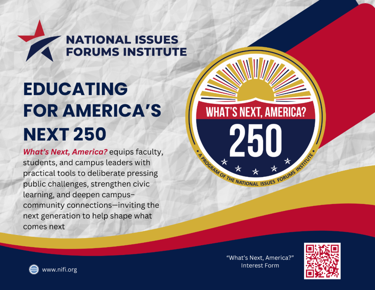 The National Issues Forums Institute is inviting campuses to participate in “What’s Next, America?”