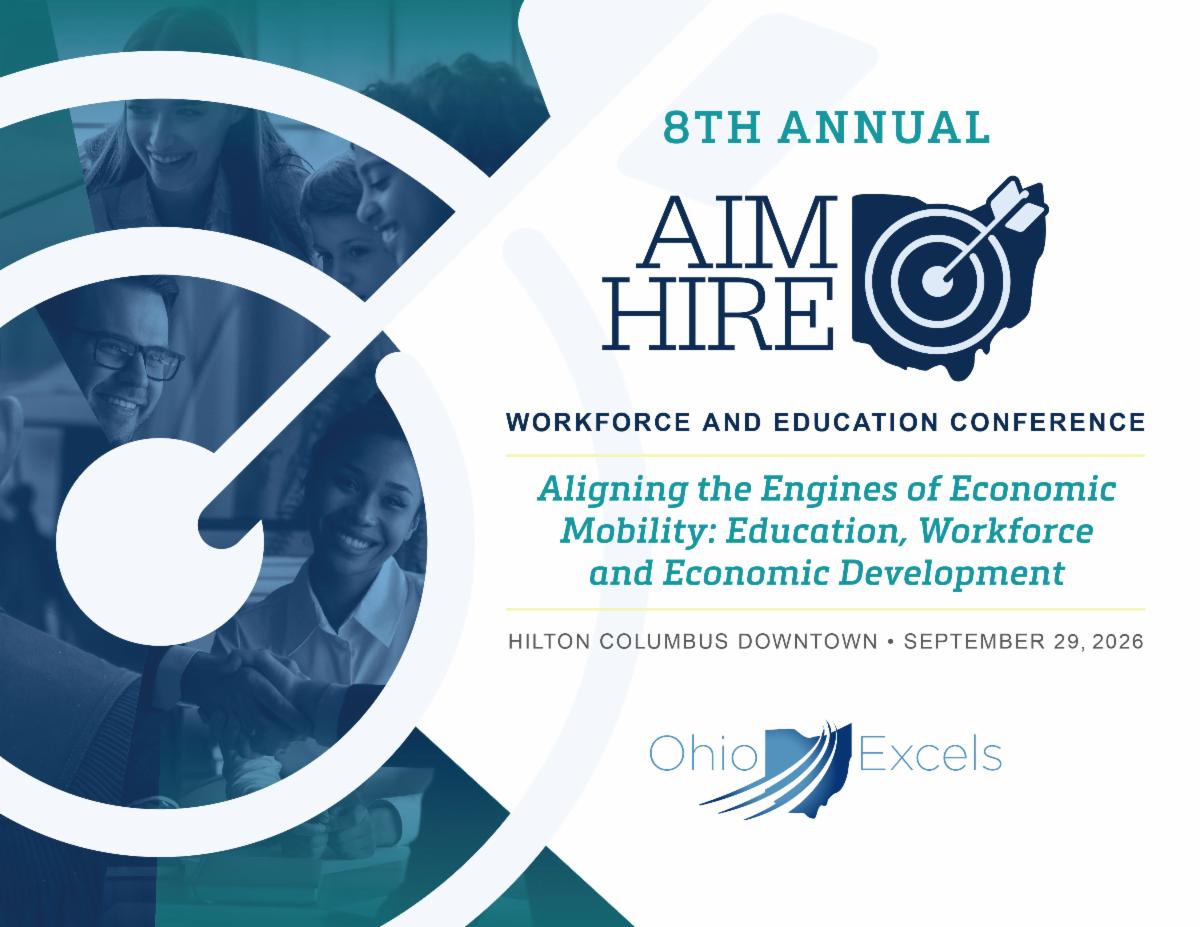 Ohio Excels and the Governor’s Office of Workforce Transformation will once again host the Aim Hire Workforce and Education Conference on September 29, 2026, at the Hilton Columbus Downtown.