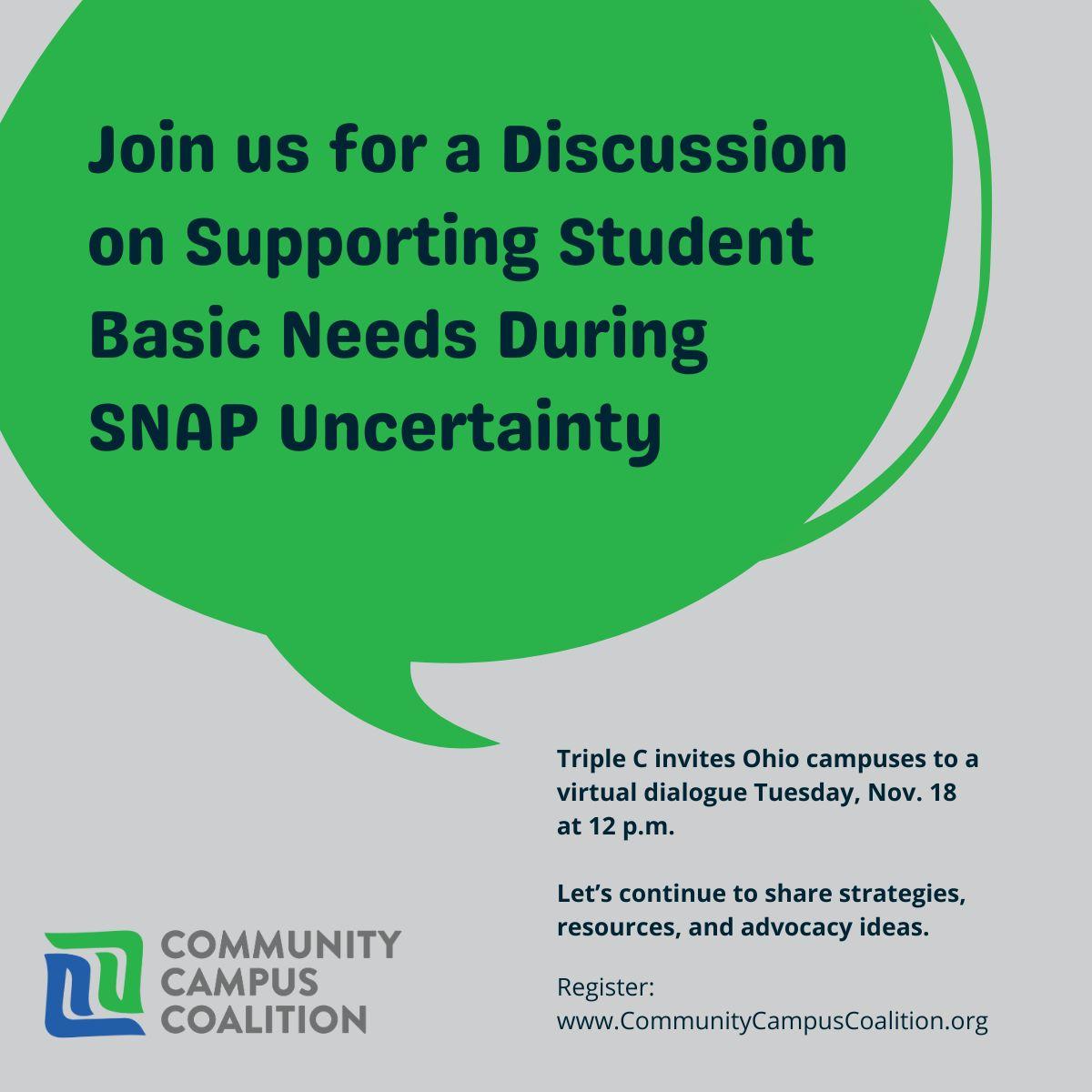 Join Triple C on Tuesday, November 18 at 12:00 p.m. for our third virtual discussion on how campuses are responding to these challenges.