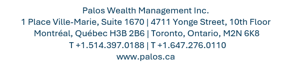 There’s nothing like the power of tax-free compounding returns. The sooner you start contributing to a tax-free (FHSA, TFSA), tax-deferred (RRSP) or tax-advantaged account (RESP, RDSP) the more time you’ll have to grow your wealth. If you would like to open an account or if you have questions about tax saving strategies, please contact your Palos advisor. |