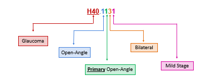 Example: - H40.1131 – Bilateral Primary Open-Angle Glaucoma, mild stage